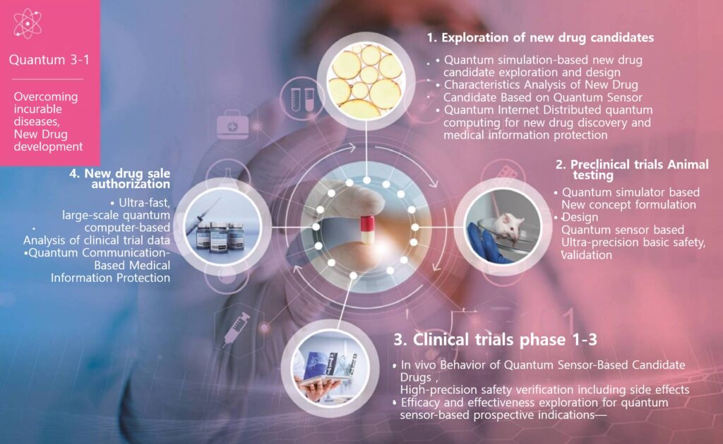 The integration of quantum science and technology with AI will enable more accurate disease diagnoses and treatments. Quantum computing-based high-performance AI technology will provide clinical data and treatments optimized for patients’ diseases. Additionally, the development of quantum sensor technology will offer more precise imaging scans and analysis results than CT and MRI, enabling ultra-micro cancer diagnosis, observing live viruses, and aiding the development of treatments based on new mechanisms, thereby opening new possibilities for the advancement of cutting-edge medical technologies.